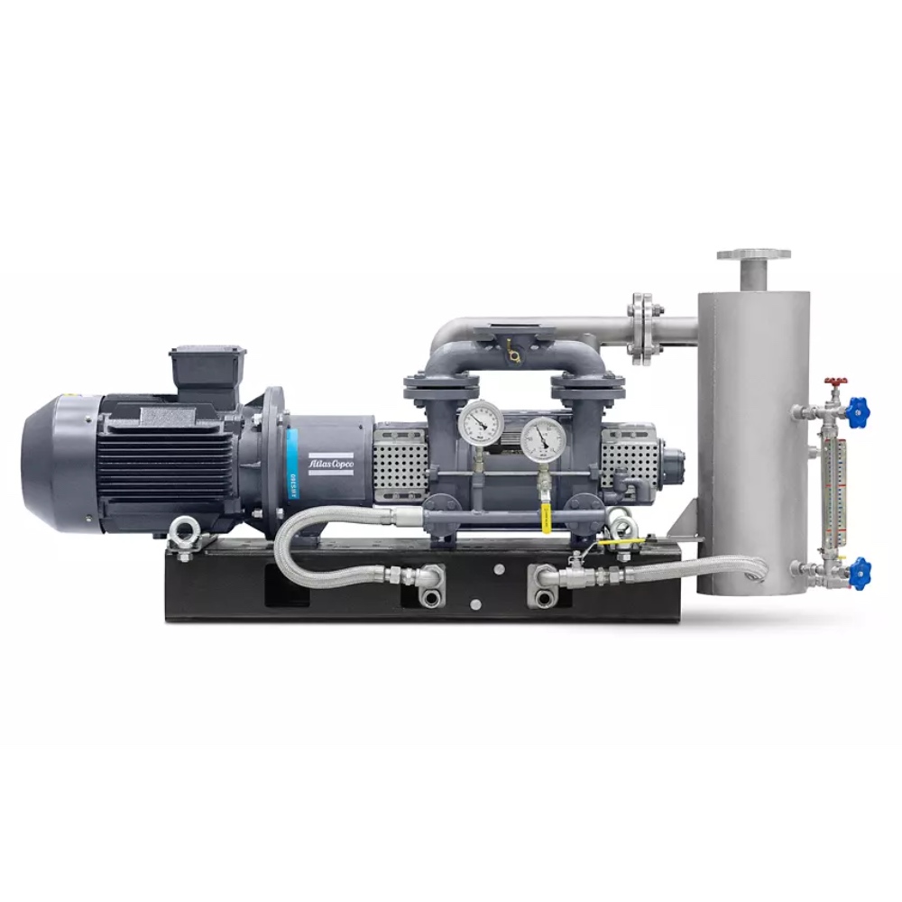 The new AW series of standard liquid ring vacuum packages are perfect for use in humid, dusty and dirty environments commonly found in industrial processes. The pumps, which have a simple and study design, reliably deliver vacuum to a whole range of industries including food & beverage, dairy, mining, chemicals, oil, steel, cement, plastics, textiles and food processing. Liquid ring pumps are equipped with a fixed blade impeller located eccentrically within a cylindrical casing. As the impeller rotates, liquid (usually water) is thrown out by centrifugal force to form a liquid ring around the circumference of the casing, sealing the tips of the impeller and creating separate enclosed gas chambers between each blade. As a result of the eccentric position of the impeller, these chambers vary in volume as the shaft rotates, having the effect of drawing in and compressing process gas. The AW liquid ring vacuum pumps are available for both single and two stage pumps. AWS single stage liquid pumps are optimized for operation above 200 mbar(a), making them perfect for applications such as filtration or wet conveying, with an ultimate pressure of 30 mbar(a). Our liquid ring vacuum pumps are offered as plug & play modules or engineered systems for complex duty applications in a number of configurations and are suitable for operation in once through, partial recirculation or total recovery. For partial or total recovery systems the pump package components are offered with stainless steel wetted parts as standard, irrespective of the materials of construction of the pump. The AW liquid ring vacuum pumps are available for both single and two stage pumps. Our liquid pumps are optimized for operation above 200 mbar(a), making them perfect for applications such as filtration or wet conveying, with an ultimate pressure of 30 mbar(a). They are the perfect solution for cyclical pump down applications such as evacuation, impregnation or sterilization. AWD dual stage pumps are finely tuned machines dedicated to providing consistent high performance at operation pressures below 200 mbar(a). The two synchronized pumping chambers work in series to enable optimal performance on continuous critical process applications such as bottling, degassing, & solvent recovery.